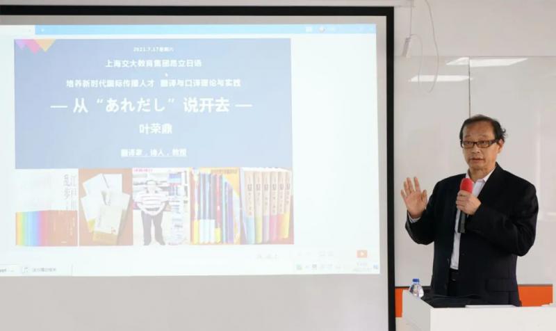 2021年7月17日,日本文学翻译家,诗人,联合国教科文组织国际翻译家联盟译员叶荣鼎教授莅临我校。在上海交大南洋大楼,叶荣鼎教授作题为“培养新时代国际传播人才 翻译与口译理论与实践讲座”的专题讲座。上海交大教育集团昂立日语业务部总经理姚新红老师担任此次讲座主持,昂立日语师生、沪上日语翻译口译爱好者有幸聆听了此次讲座。